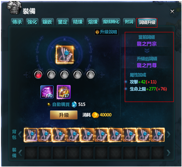 2.「詞綴升級」玩家需使用「精魂」、「淚晶」提升詞綴屬性。