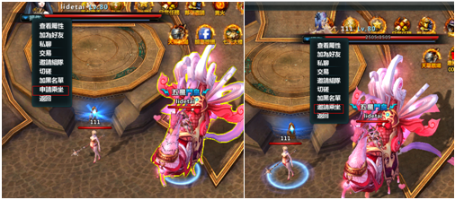 - 雙方可以按H鍵主動下坐騎,取消乘騎。